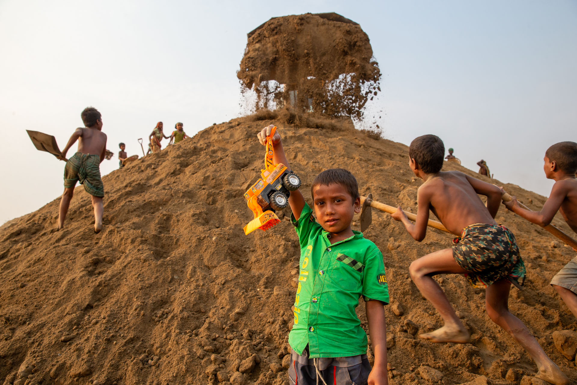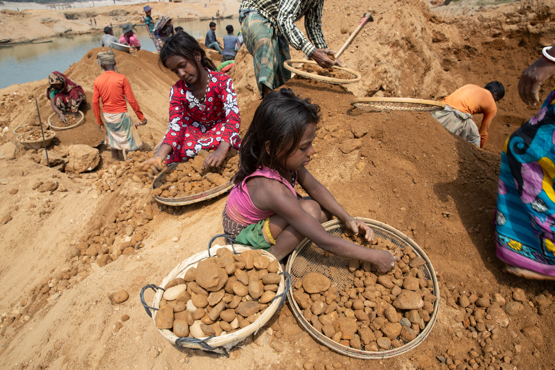 Every day, more than 1,000 children work as stone laborers alongside their parents in the field to collect stones at the Bholagonj stone quarry, located on the northeastern part of the India-Bangladesh border. It is one of the biggest stone quarry fields in Bangladesh. All collected stone goes to the merchant party. The average income of a stone laborer is less than 500 taka per day, approximately 6 US Dollars, and child laborers receive around 1 dollar per day. Children work in this stone quarry field to help their poor families. Uncontrolled Bholagonj stone extracting and crushing at Bholagonj have been posing a serious threat to the children’s health, their future, and the environment.