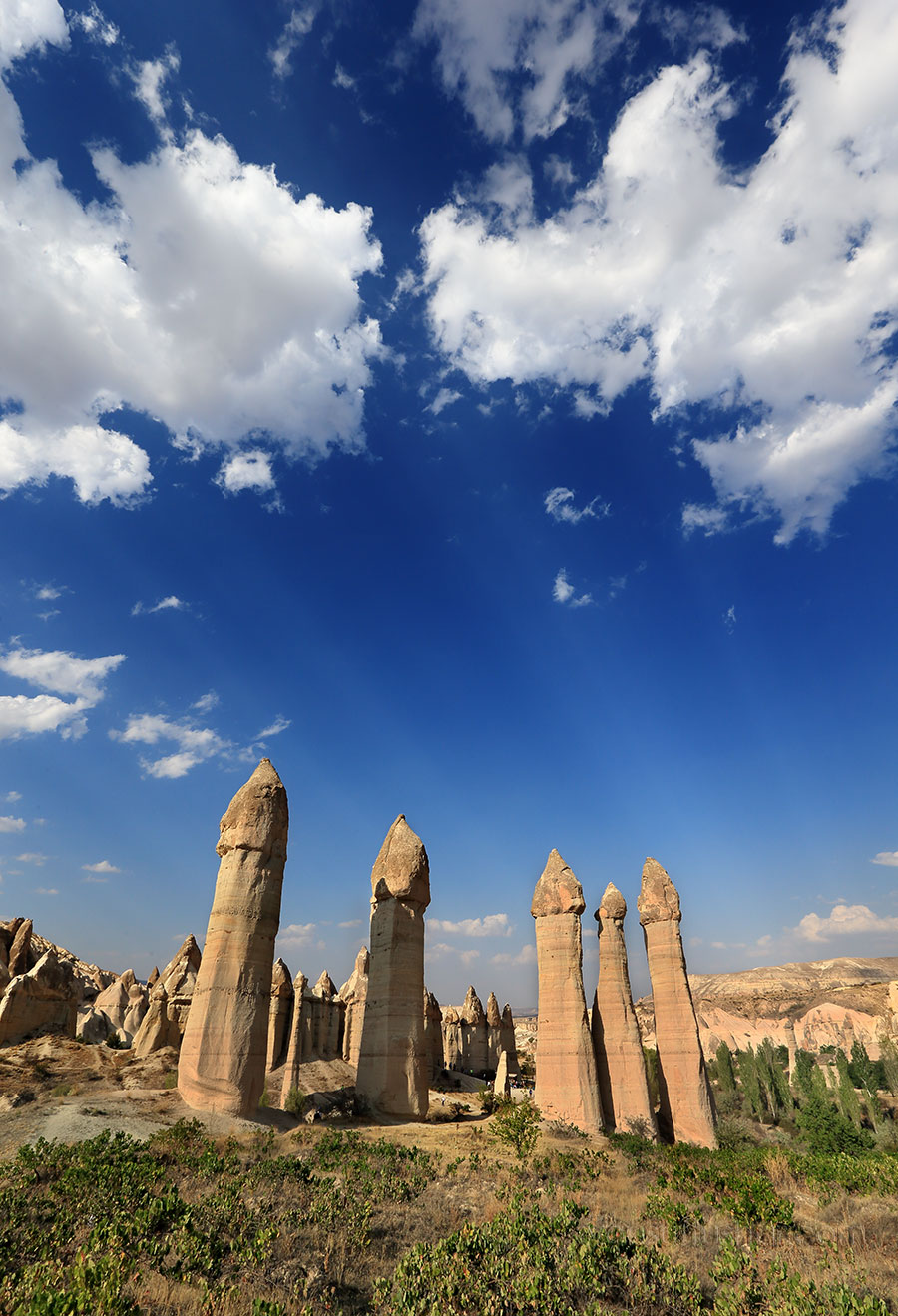Cappadocia, UNESCO world heritage site, a semi-arid region in central Turkey, is full of otherworldly natural sites, most notably the “fairy chimneys,” tall, cone-shaped rock formations clustered in Monks Valley and elsewhere. Popular for exploration are Bronze Age homes carved into valley walls by troglodytes (cave dwellers) and later used as refuges by early Christians. The 100m-deep Ihlara Canyon houses numerous rock-face churches.