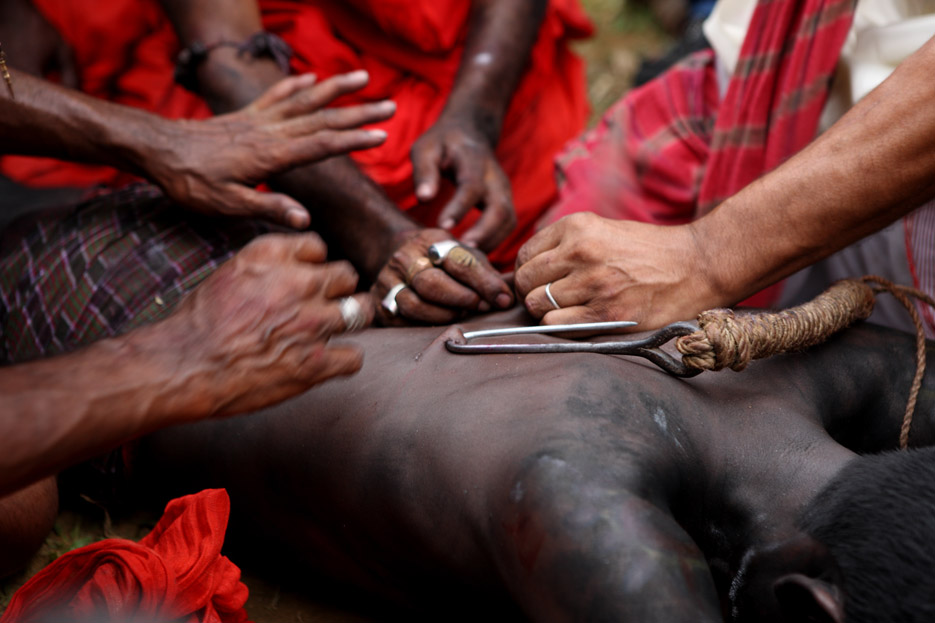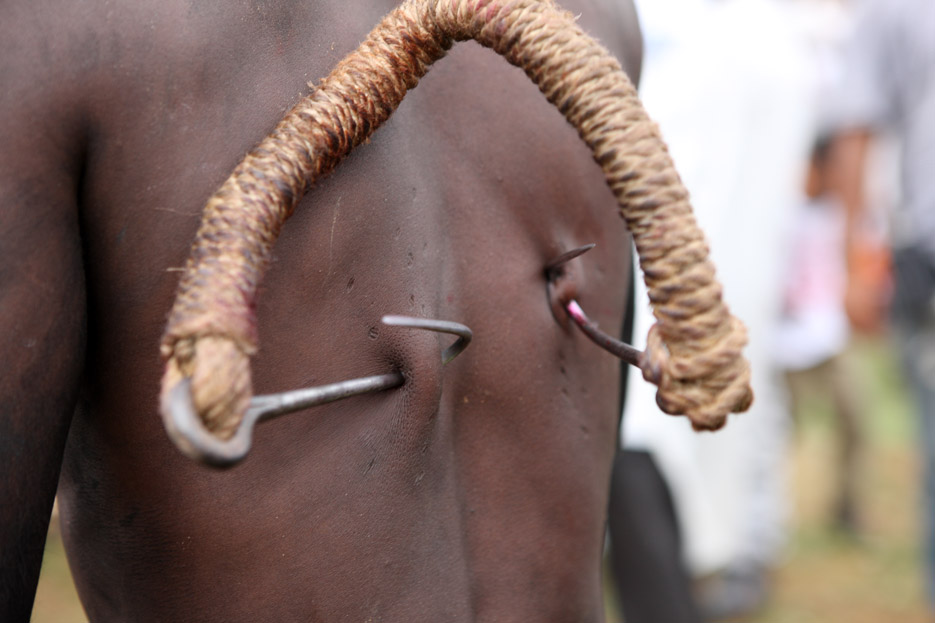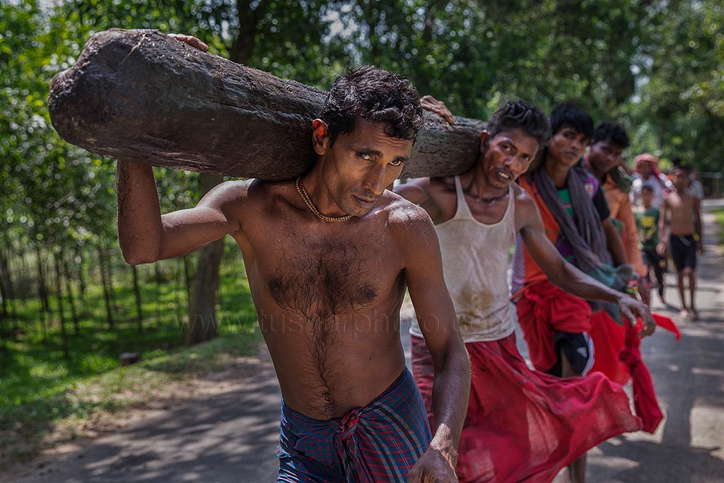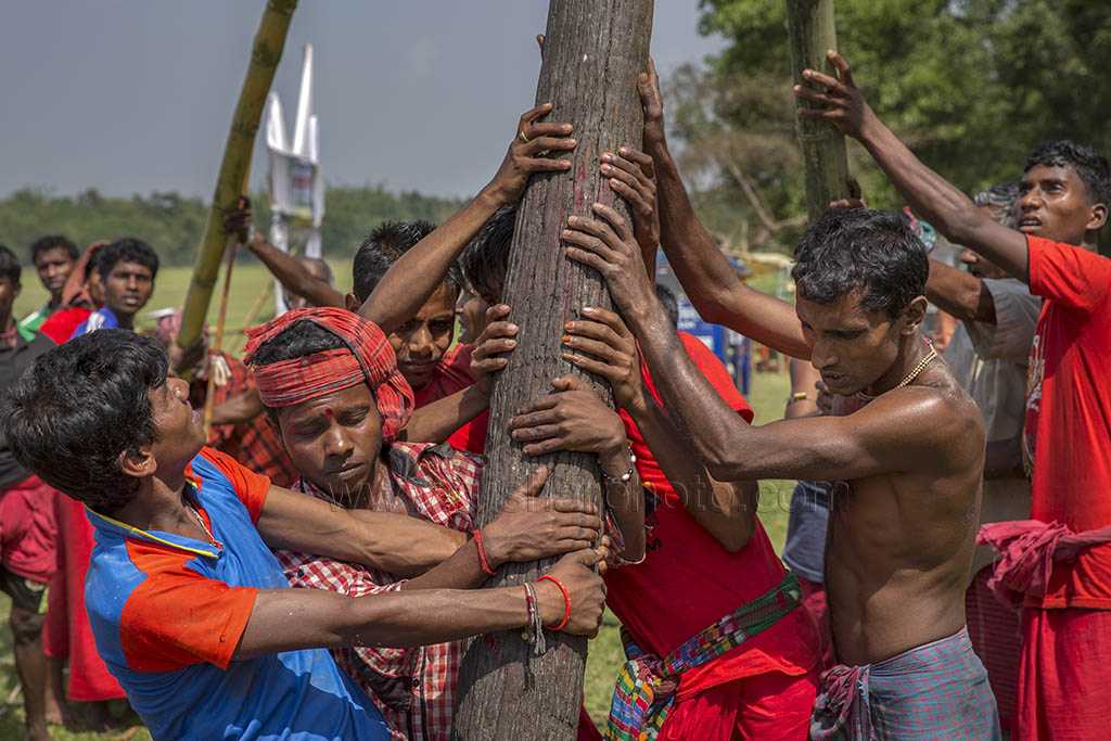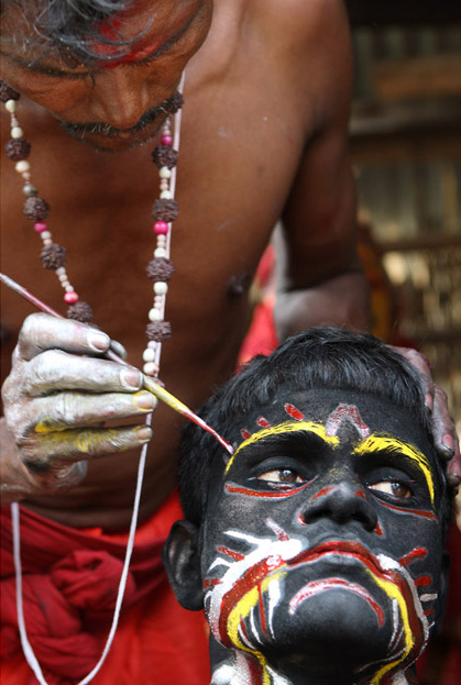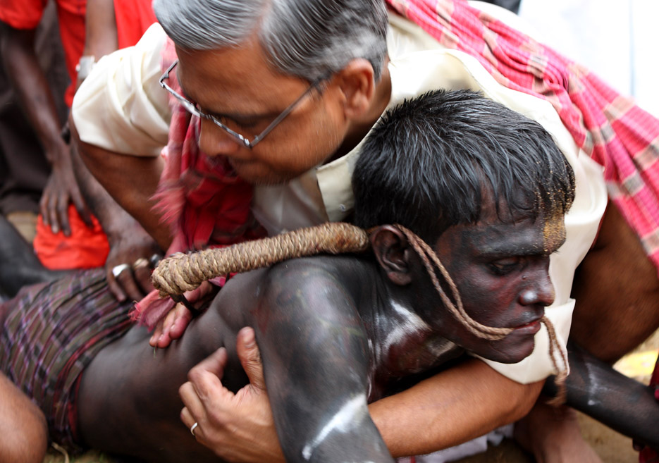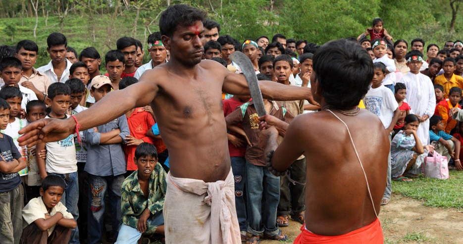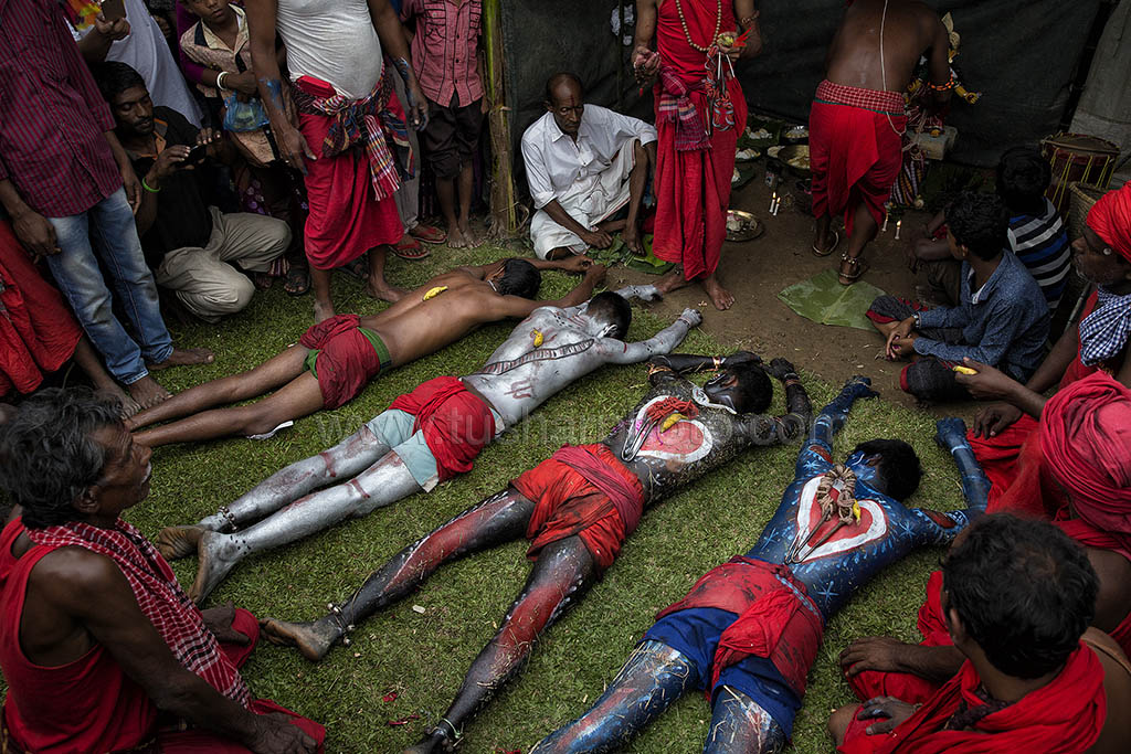 A group of Hindu devotees performs the rituals of Charak Puja. It is a very enchanting folk festival of the Southern Belt of Bangladesh and West Bengal. It is also known as “Nil Puja”. The believers of the Hindu religion celebrate this on the last day of the Bengali month of the year (Chaitra Songkranti). People believe that the festival will carry prosperity by eliminating the sorrow and sufferings of the previous year. The festival is actually a festival to satisfy “Lord Shiva”, the great “Debadideb” of Hindu Religion. Sylhet, Bangladesh. April 14, 2010